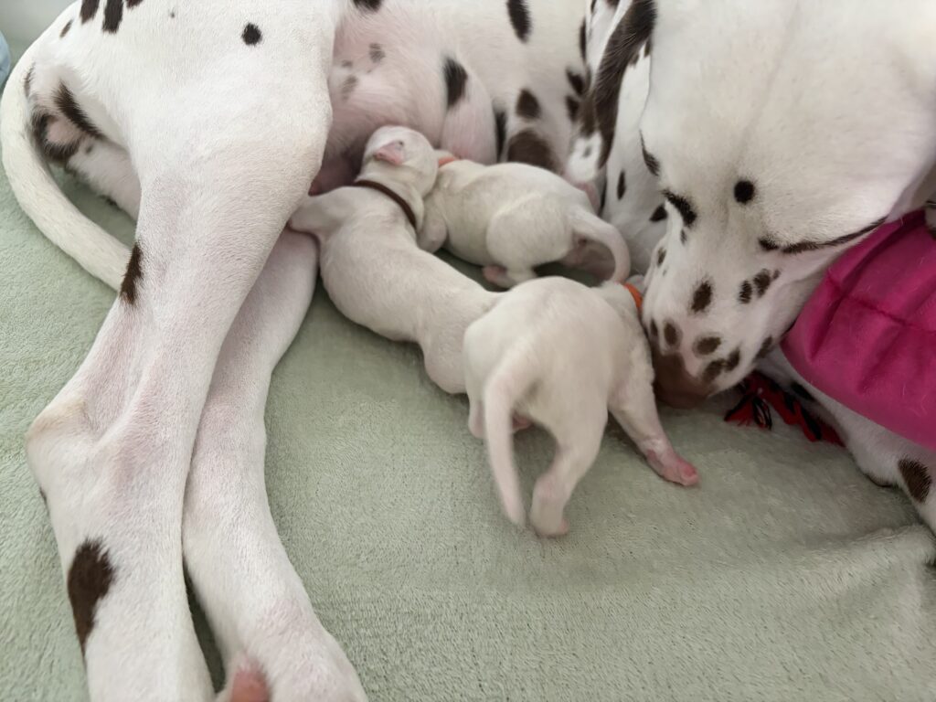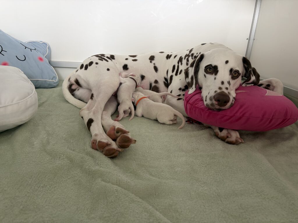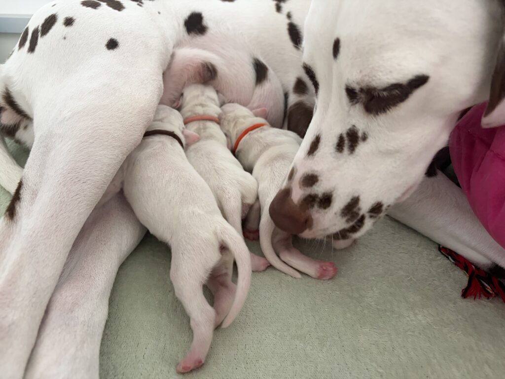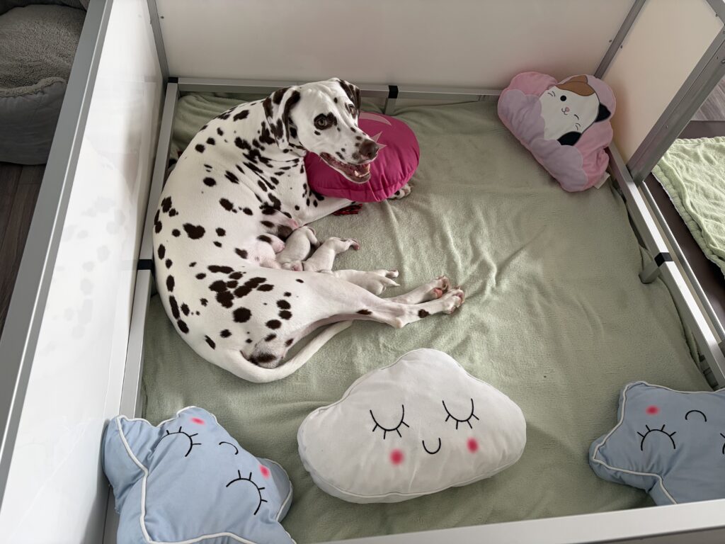 Am 21.03.2026 hatte das Warten auf unseren F-Wurf ein Ende. Um 18:00 Uhr am Abend brachte Akira das erste Baby zur Welt. Sie machte das souverän. Es war ein Boy. Was wir noch nicht wussten, es sollte noch einer kommen. Ihm folgten im Laufe des Abends bis 22:00 noch 1 Mädel. Schlussendlich waren es 1 Mädel und 2 Boys. Dies ist ein überschaubarer Wurf. Die kleinen drei, bringen ein durchschnittliches Geburtsgewicht von 350 g auf die Waage und zeigten sich von Anfang an zufrieden. Die Geburt verlief ohne Probleme. Akira hat für den ersten Wurf dies mit Bravur gemeistert.